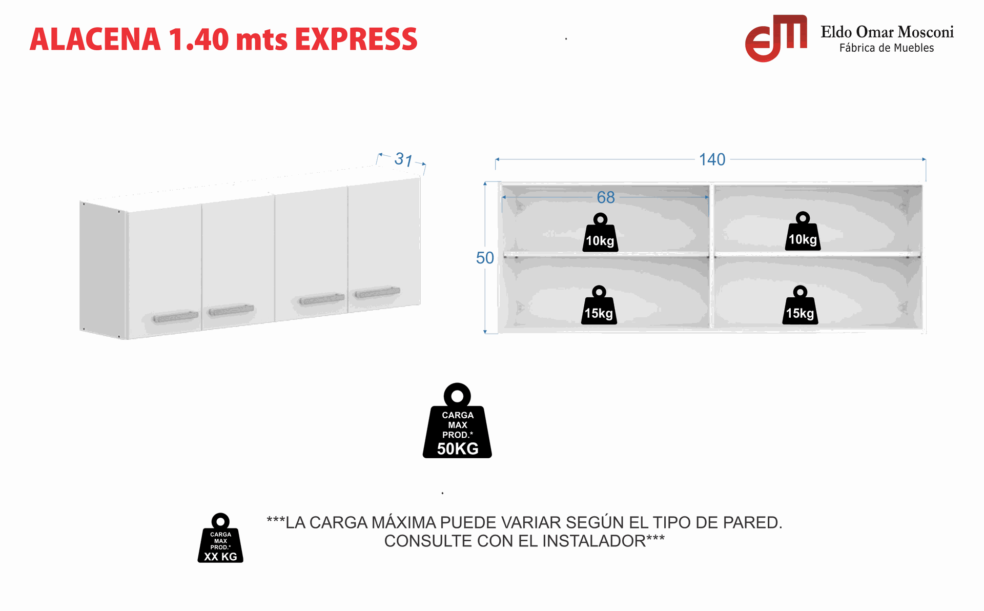 ALACENA 1.40 MTS. MELAMINA